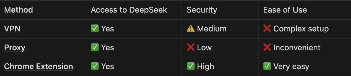 When choosing how to access Deep Seek, there are several options, but not all of them are convenient or secure. Here’s how different methods compare: